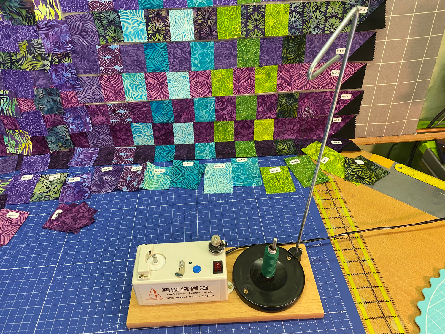 Da man oft 5 - 6 Fadenröllchen für eine Quilt-Decke braucht, ist so ein Bobbin Winder mit Lichtschranken-Abschaltung ganz praktisch.