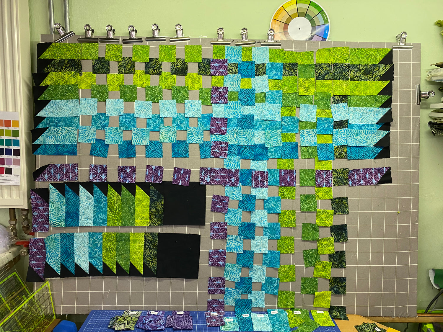 An der kleinen Design-Wand werden kleinere Objekte in allen Einzelteilen angeheftet, um sie zu ordnen und zu gestalten. Da ist pingeliges Arbeiten angesagt, damit später alles passt. Denn das Auge des Betrachters sieht sofort einen Fehler.