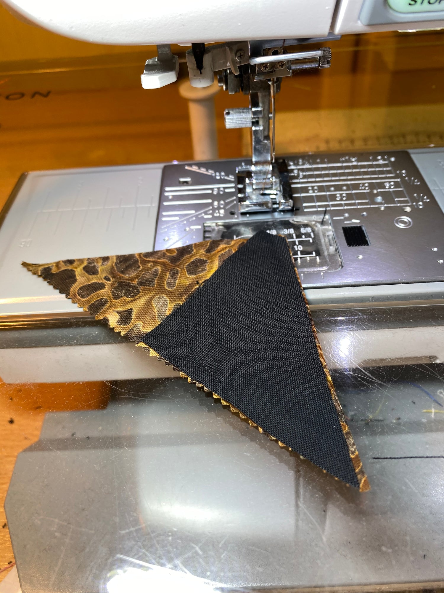 Jeder einzelne Streifen muss mit 1/4tel Zoll Nahtzugabe genäht werden. Dafür gibt es einen eigenen Nähfuss mit einem passenden Anschlag auf der rechten Seite.