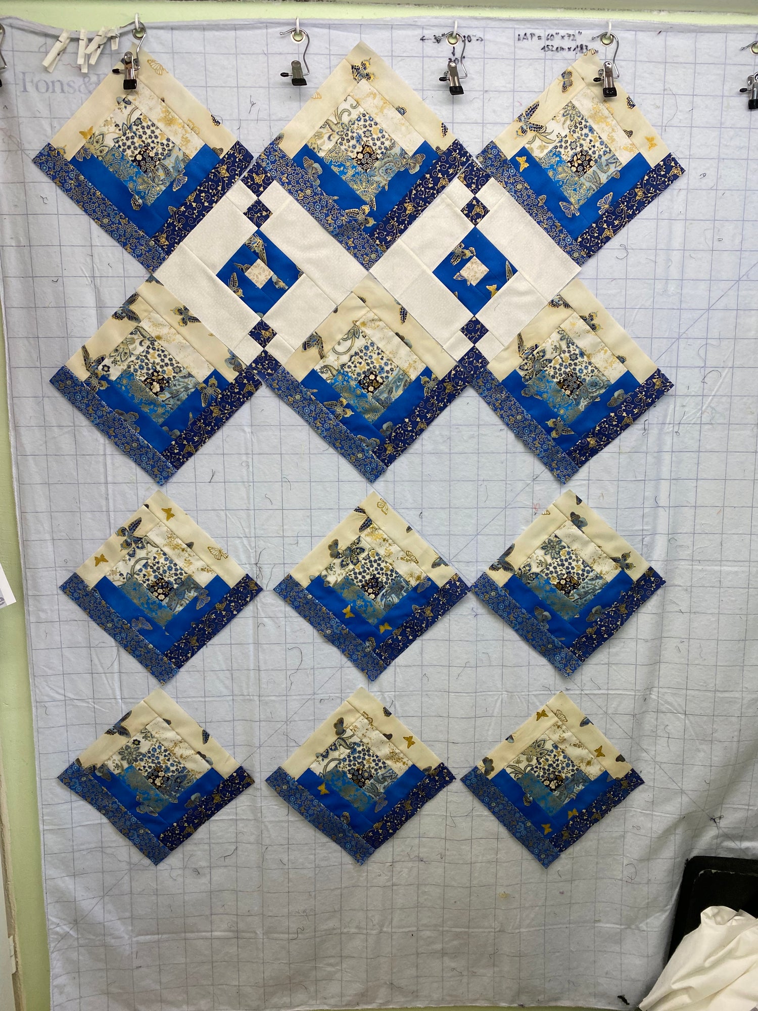 (Beim Rand muss der Quilt zweimal eingespannt werden, horizontal und vertikal)