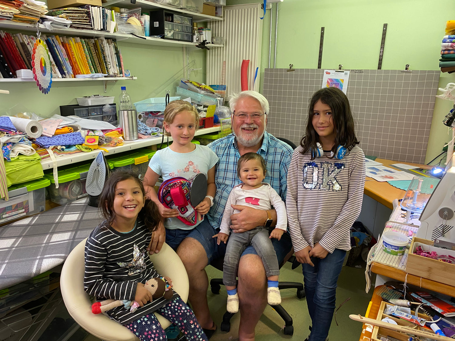 Auch wenn der Besuch von ein paar der 15 Enkel im Nähatelier oft etwas anstrengend ist, aber es macht Opa glücklich.