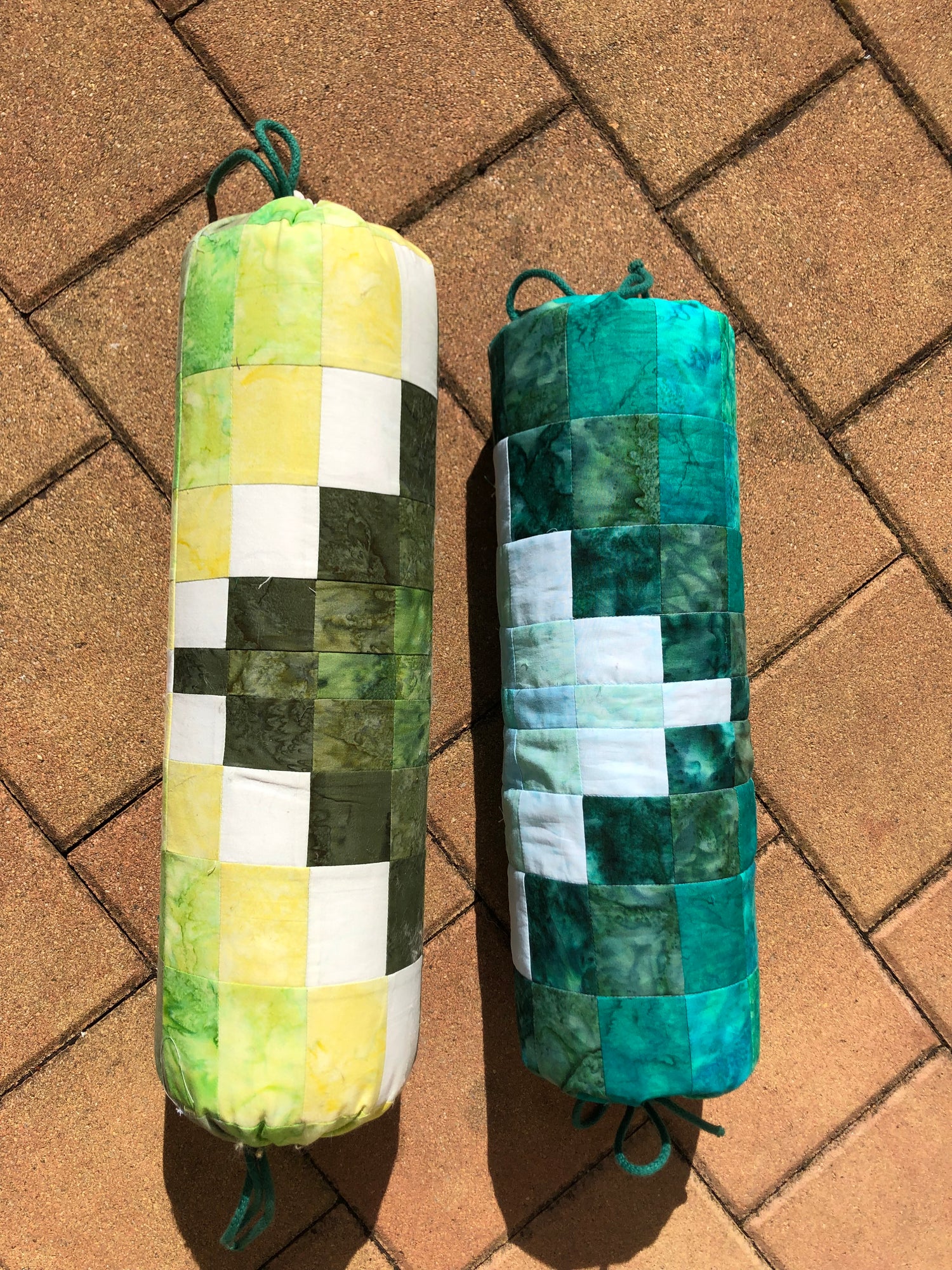 Diese Nackenrollen aus Bali-Batik-Stoffen werden in einer besonderen Technik gefertigt.