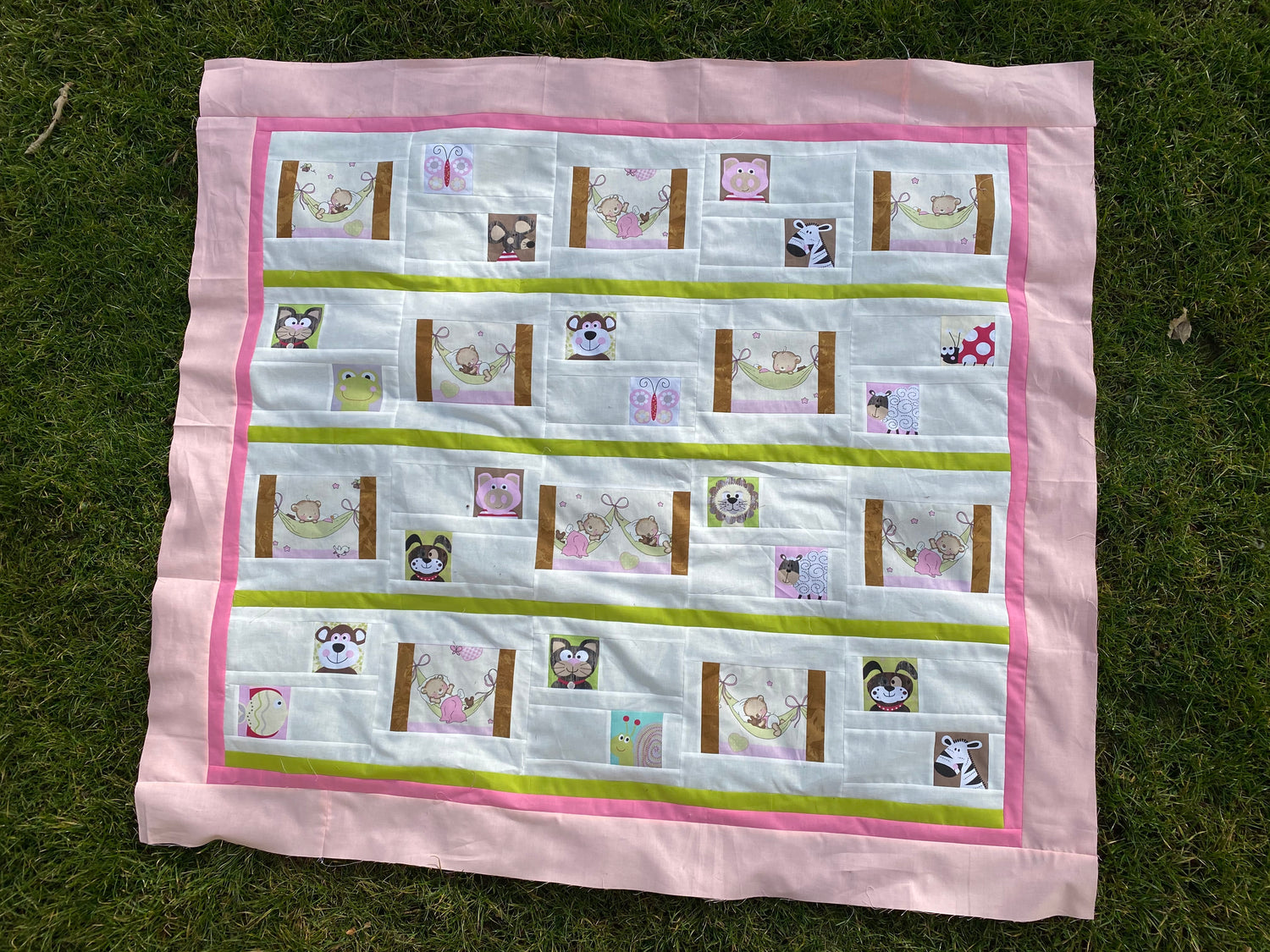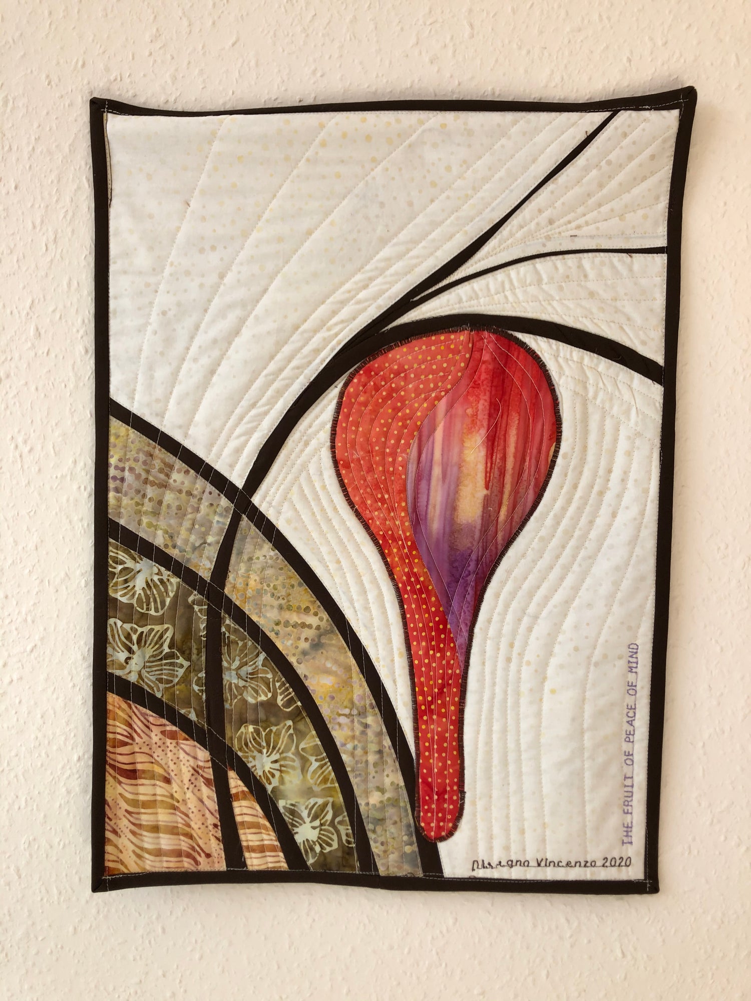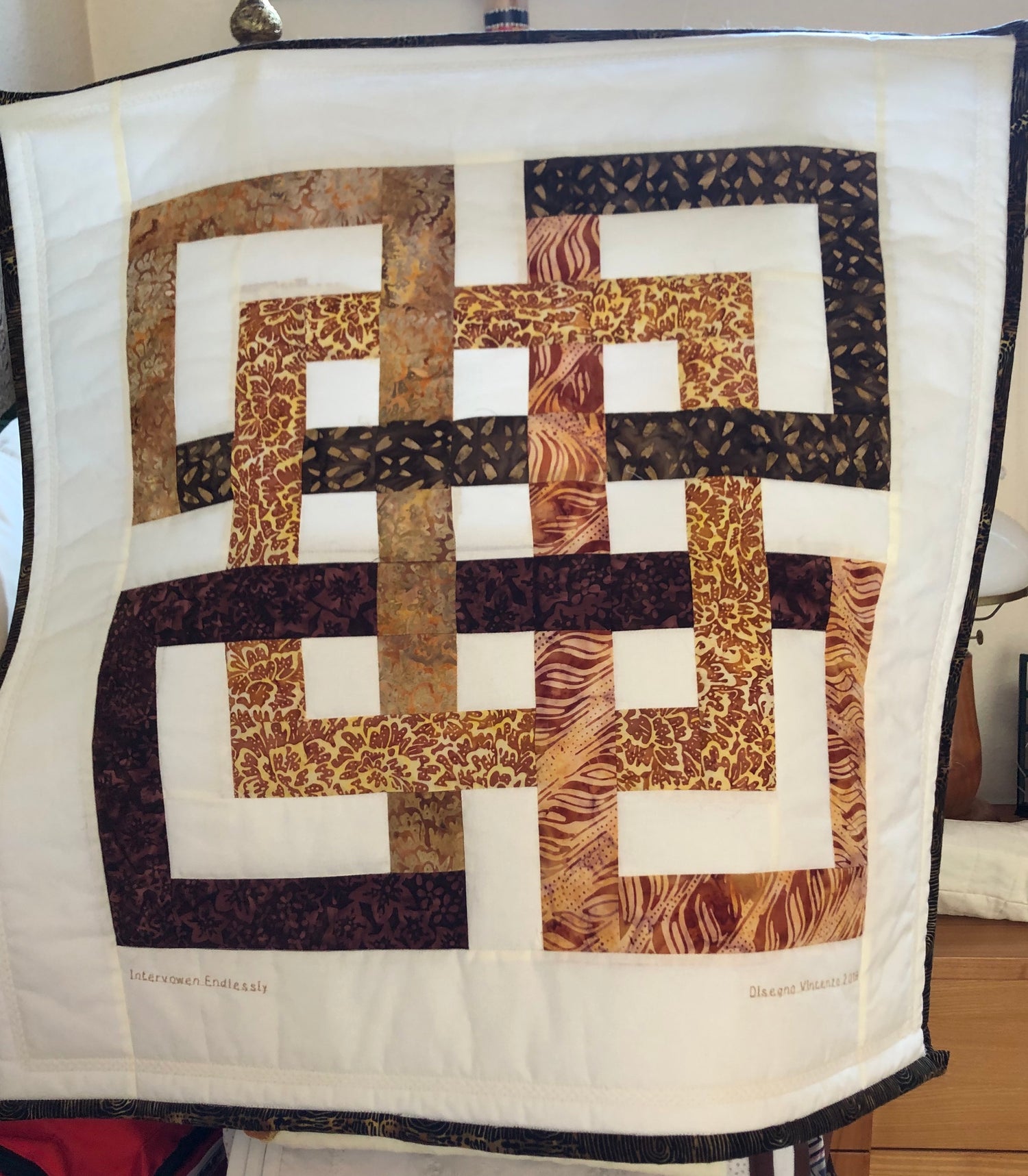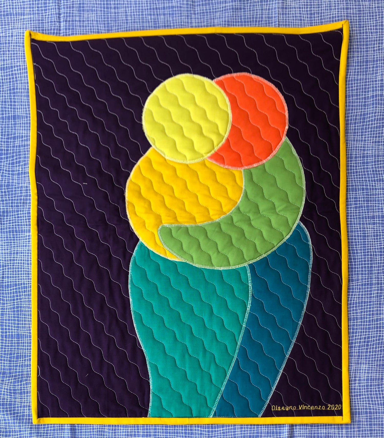 Als Tischdecke oder Wandbehand gibt dieser Quilt einen Farbakzent in einer ansonsten sehr aufgeräumten Wohnung.
