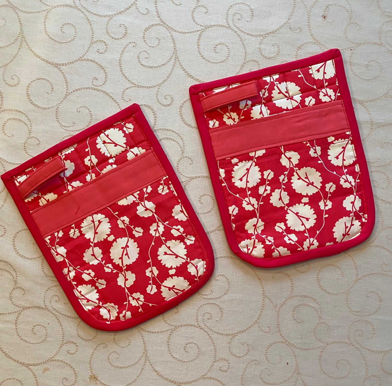 Passend zu den anderen Topflappen, hier eine flache Version mit Eingriff. Auch mit Thermo-Fütterung.