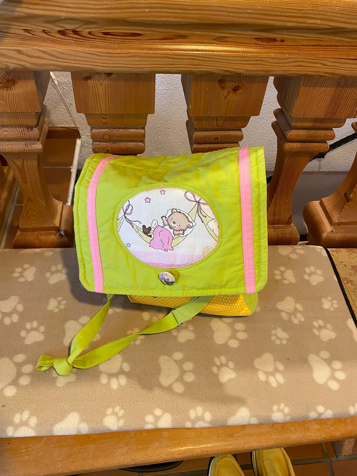 Diese Kindertasche musste praktisch zum Umhängen sein und fröhliche Farben haben.